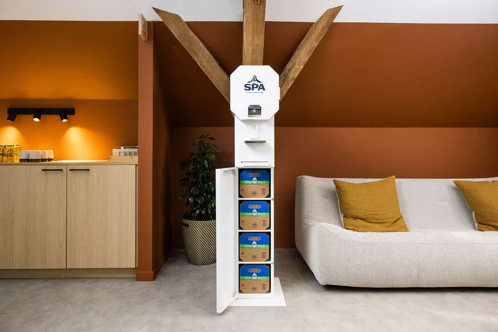 La Fontaine SPA est un distributeur d’eau compatible avec les Eco Packs 10L de SPA Reine. Une solution innovante et durable qui vous aide à rester hydraté tout au long de la journée. La pureté de SPA Reine, issue des Fagnes belges, une région protégée depuis 1889. Les Eco Packs de 10 litres sont entièrement recyclables et contiennent jusqu’à 70 % de plastique en moins que les emballages classiques. Ils sont conçues par une entreprise locale et engagée, fabriquée en Europe. On a le choix entre 2 modèles: compact ou sur pied avec espace de rangement pour 4 Eco Packs.